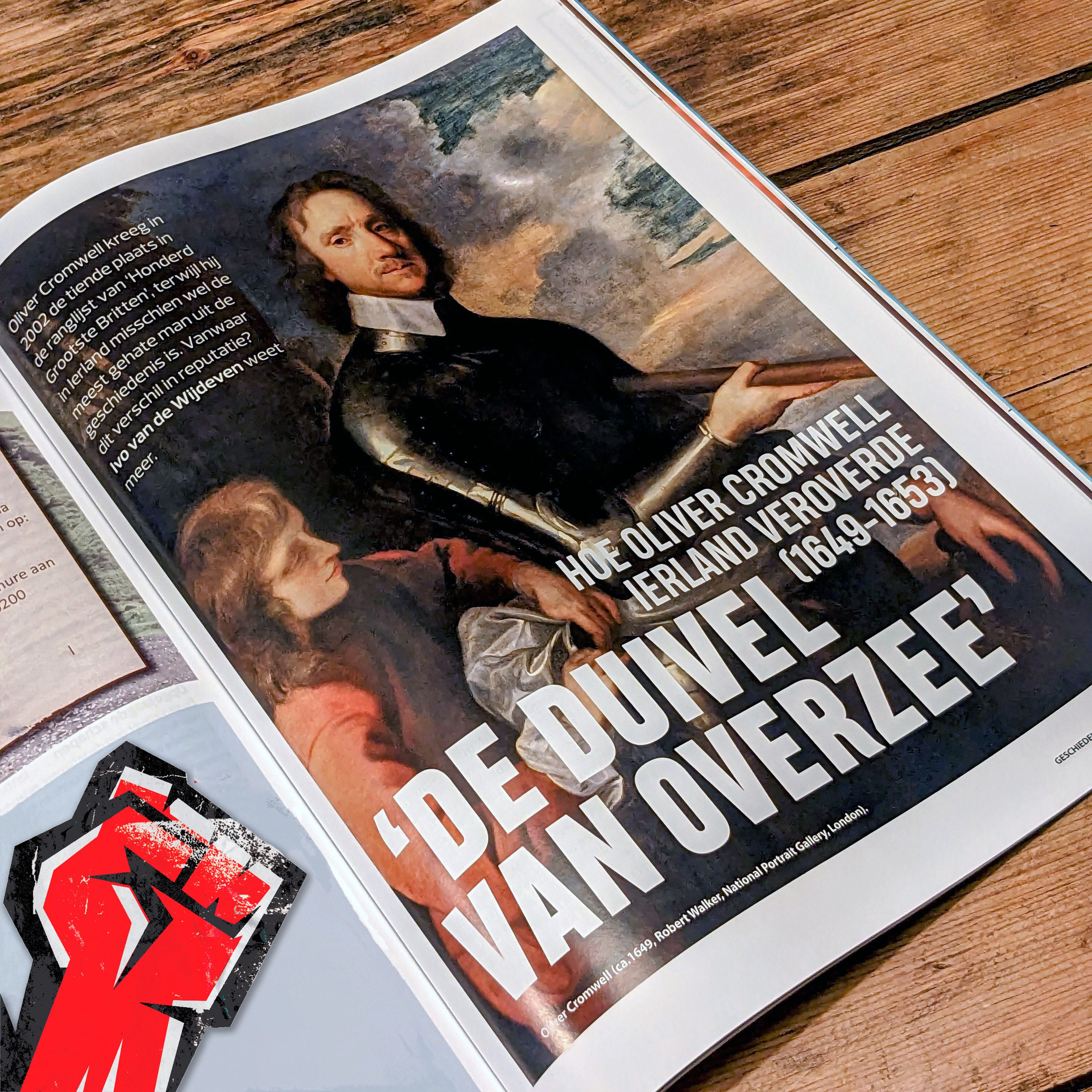Oliver Cromwell in Ierland 22 april 202312 maart 2026 De BBC presenteerde in 2002 na een opiniepeiling onder televisiekijkers de ‘100 Greatest Britons’. De eerste plaats was niet geheel verrassend voor oorlogspremier Winston Churchill. Maar de 17de-eeuwse politicus en legeraanvoerder Oliver Cromwell kwam op een zeer respectabele tiende plaats. Hij wordt in Engeland gezien als een van de belangrijkste staatslieden uit de roemrijke Britse geschiedenis. Aan de andere kant van de Ierse Zee roept Cromwell ook nu, meer dan 350 jaar na zijn dood in 1658, radicaal andere emoties op. Daar krijgt hij zo ongeveer de schuld van iedere kasteelruïne en in ieder dorpje zijn er wel sterke verhalen over de gruweldaden van Cromwells ‘New Model Army’ tegen de lokale bevolking. Cromwell verbleef slechts negen maanden op Ierse bodem, maar wordt daar beschuldigd van oorlogsmisdaden, religieuze vervolging en etnische zuiveringen. Hij is in Ierland de kop van jut. Vanwaar dit verschil in reputatie? Voor Geschiedenis Magazine beschreef ik dit geval van de macht van het verleden dat het gelijknamige boek niet haalde.